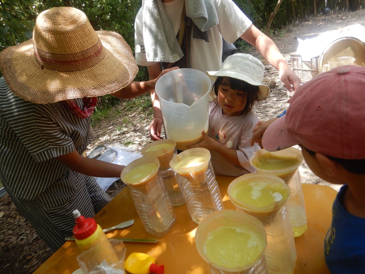 今日は、どんな色の絵の具ができるのか、楽しみ楽しみ。